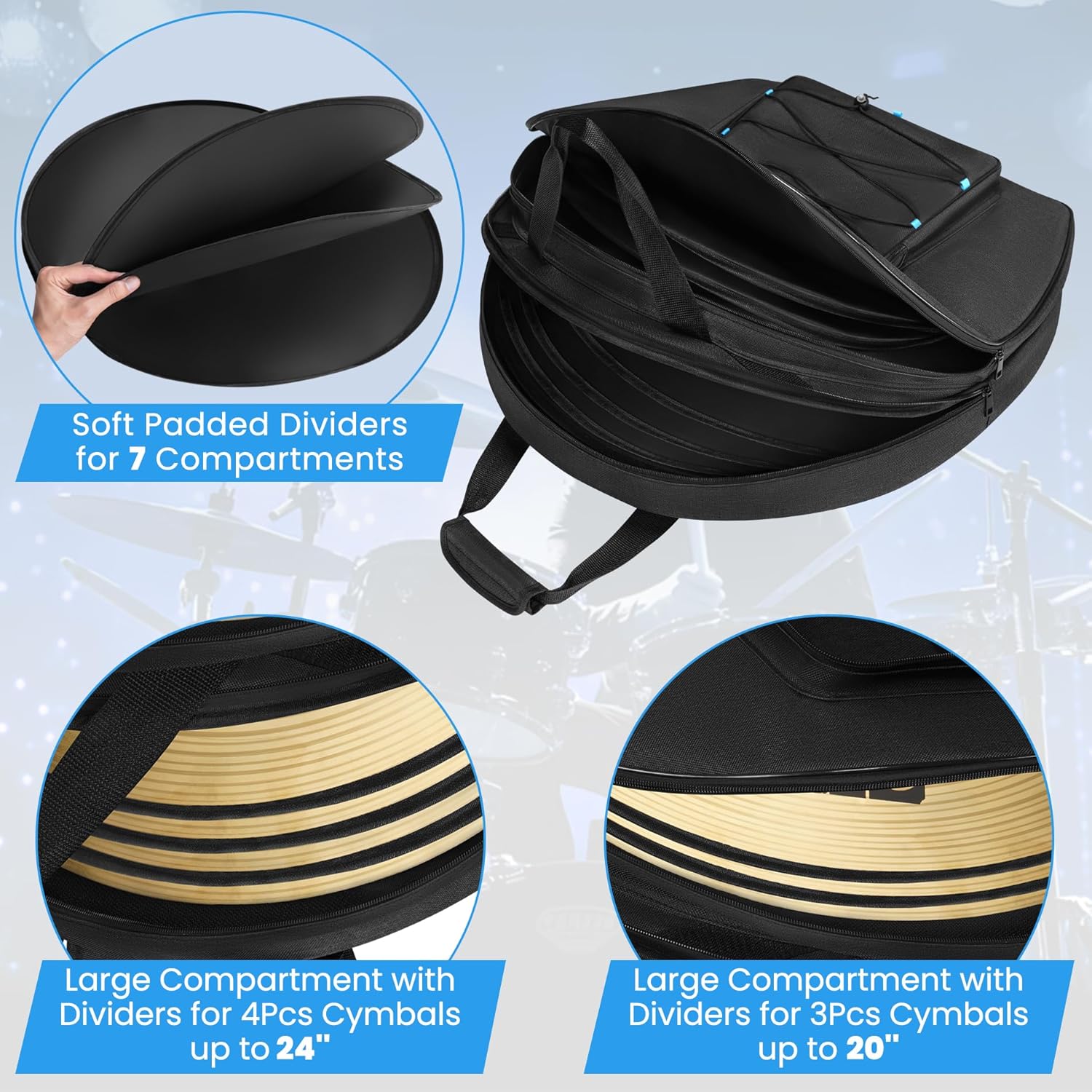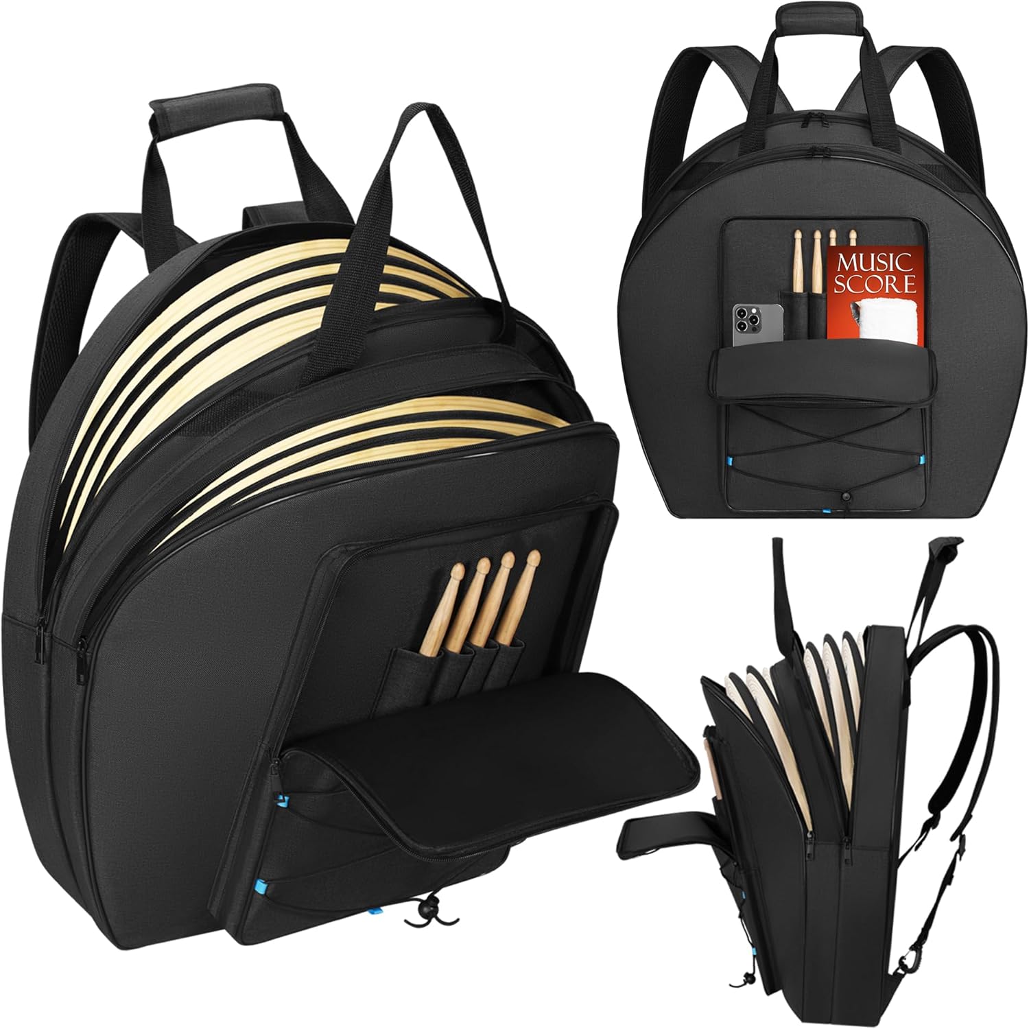22" Cymbal Bag Backpack – Padded Double-Layer Gig Bag with Dividers, Multi-Pocket Soft Case, Backpack Strap & Carrying Handle