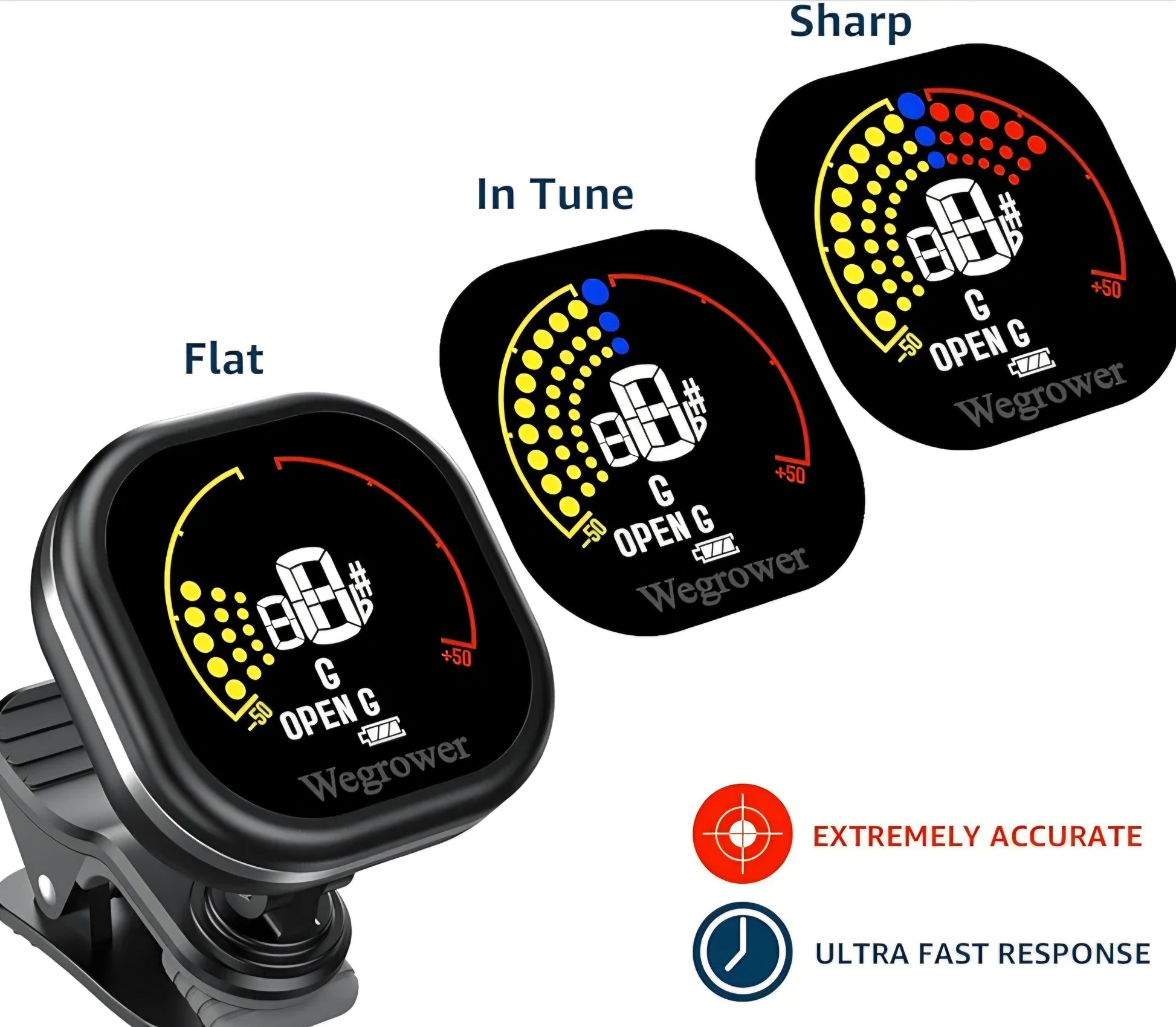 The rechargeable battery saves you money and hassle, while the 360° adjustable clip ensures you can always see the screen in any lighting environment. Ideal for home practice, stage use, studio work, and music lessons.