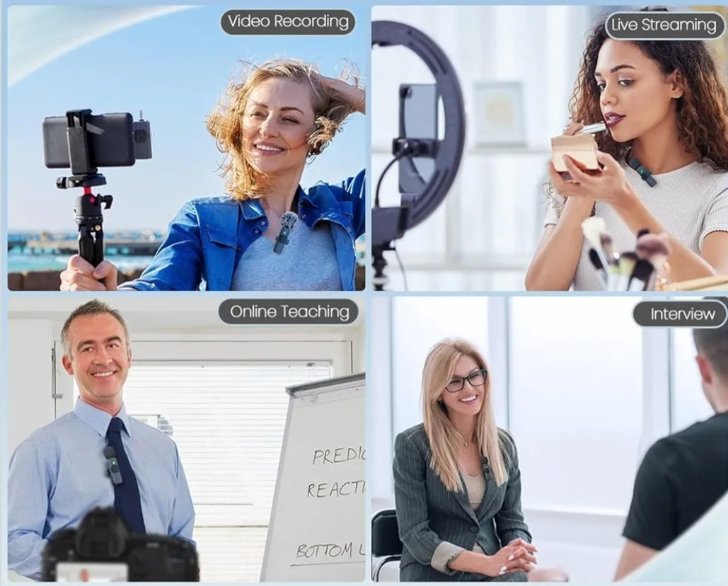 Weton 4 in 1 Wireless Lavalier Microphones for iPhone, Camera, Android, Laptop, Mini Microphone, Noise Canceling Lapel Mic - Clip on Mic for Interview Video Recording Podcast Vlog YouTube